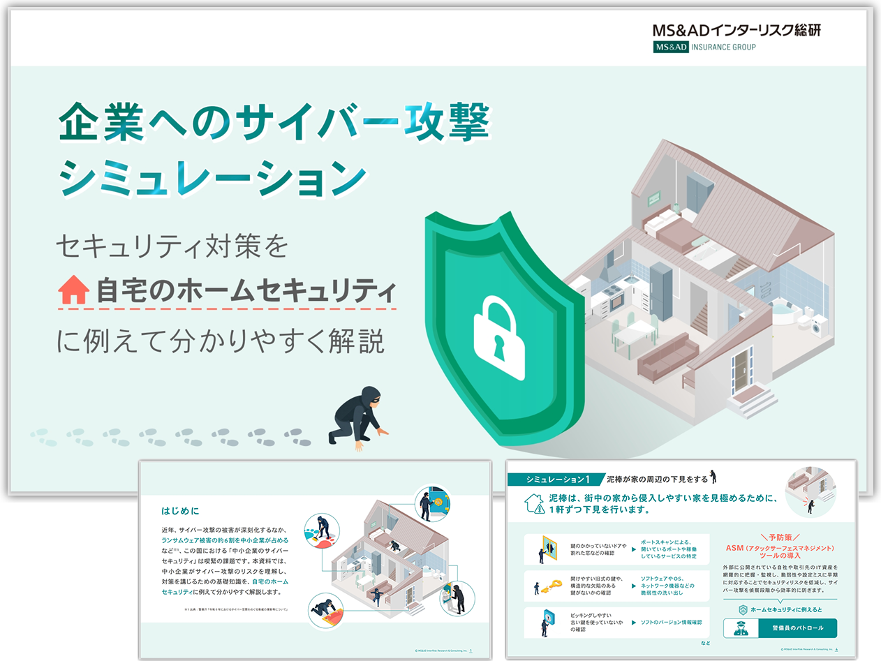 本資料では、企業へのサイバー攻撃を「自宅のホームセキュリティ」に例え、偵察から侵入、物色、逃走までの手口と、それぞれの段階で講じるべきセキュリティ対策を分かりやすく解説しています。